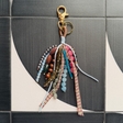 Брелок «Гроно» з міксу натурального каміння, скляних намистин.У брелку 10 ниток із різних матеріалів (турмалін, бірюза, гематит, місячний камінь, бірюза, аквамарин, жадеїт). Такокож використані штучна замша та алтасна стрічка