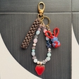 Брелок «Зайчик» з міксу натуральних камінчиків та скляних намистин.Канатик та фігурка зайчика виконані з паракорду.