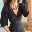 Намисто з гематиту та підвісок ручної роботи.Довжина 43 см + 5 см ланцюжок для регулювання довжини.Фурнітура нержавіюча сталь з покриттям.